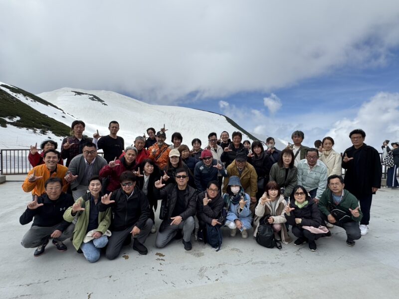 コロナ禍の期間を経6年ぶりのあやめ会親睦旅行とクラブ例会を合同で開催しました。クラブ員22名、あやめ会15名の合計37名が大型バスに乗り込み、目的地『立山雪の大