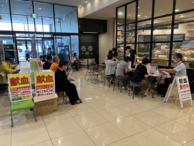 8月7日(日)今年度1回目の街頭献血をイオンモールとなみで実施しました。 昨年度に引き続き、若年層の献血に力を入れ、砺波高校・砺波工業高校を訪問して献血の協力を
