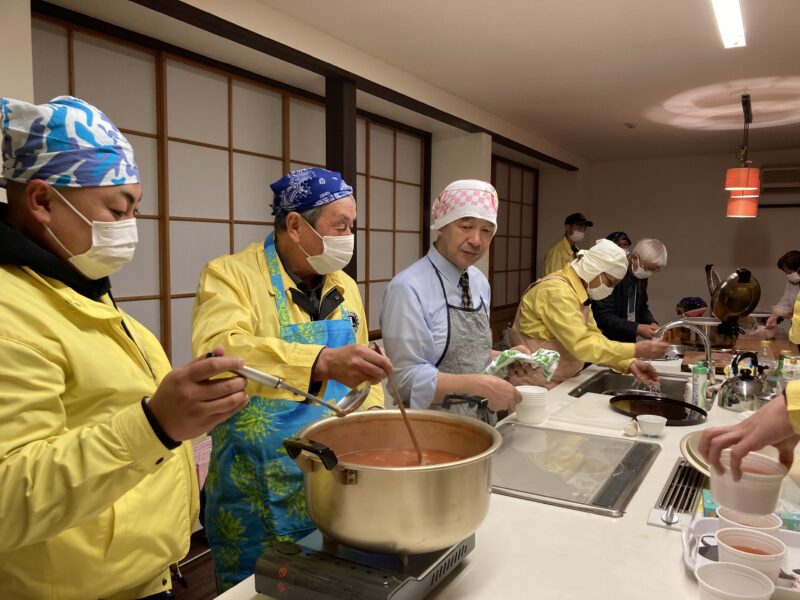 3月22日(金)砺波市の学習支援「こみんか塾」の子どもたちの『進級卒業お祝い会』を開きました。今回のメニューはローストビーフ丼、ミネストローネ、コールスローサラ
