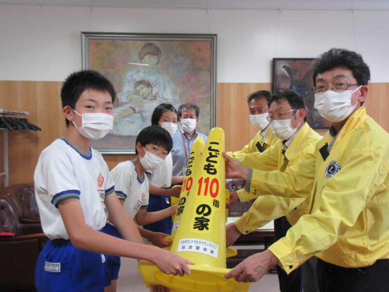 今年度は、『こども110番の家』黄色のカラーコーンを要望があった出町小学校へ50個寄贈しました。 贈呈式は7月5日(火)出町小学校体育館で行われ、砺波警察署刑事