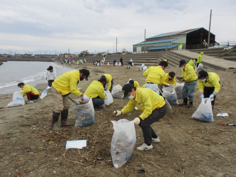富山湾の環境を守るには『まずは上流に住む私たちから』を合言葉に、当クラブでは4年前から庄川と小矢部川の合流地点である射水市六渡寺海岸の清掃を行っています。 今年