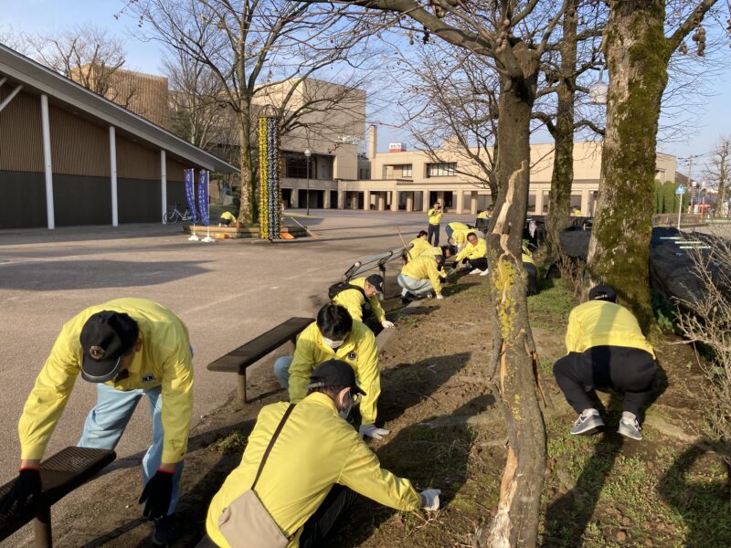4月6日(土)の朝7時、昨年に続き砺波チューリップ公園の清掃に参加しました。朝の爽やかな日差しの下、天候に恵まれまた4回目ということもあり、各自がさっと持ち場に