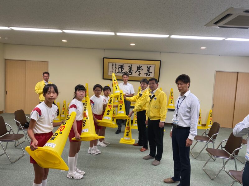 今年度は、『こども110番の家』黄色のカラーコーンを要望があった砺波北部小学校へ50個寄贈しました。 贈呈式は7月11日(火)砺波北部小学校校長室で行われ、砺波