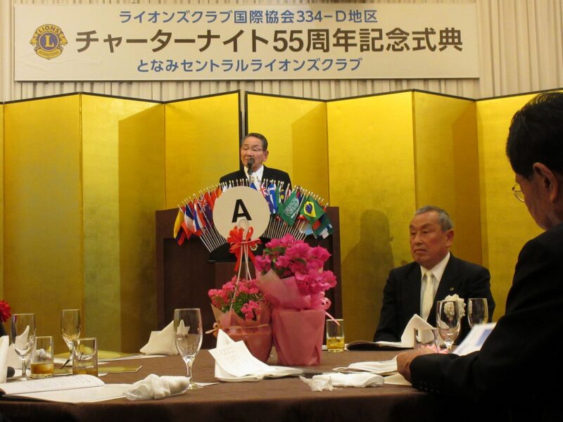 4月16日(日)CN55記念式典をTONAMI翔凛館において、副地区ガバナー、ホストクラブ役員、会員配偶者を招待して挙行しました。 はじめに山﨑泉大会委員長が当